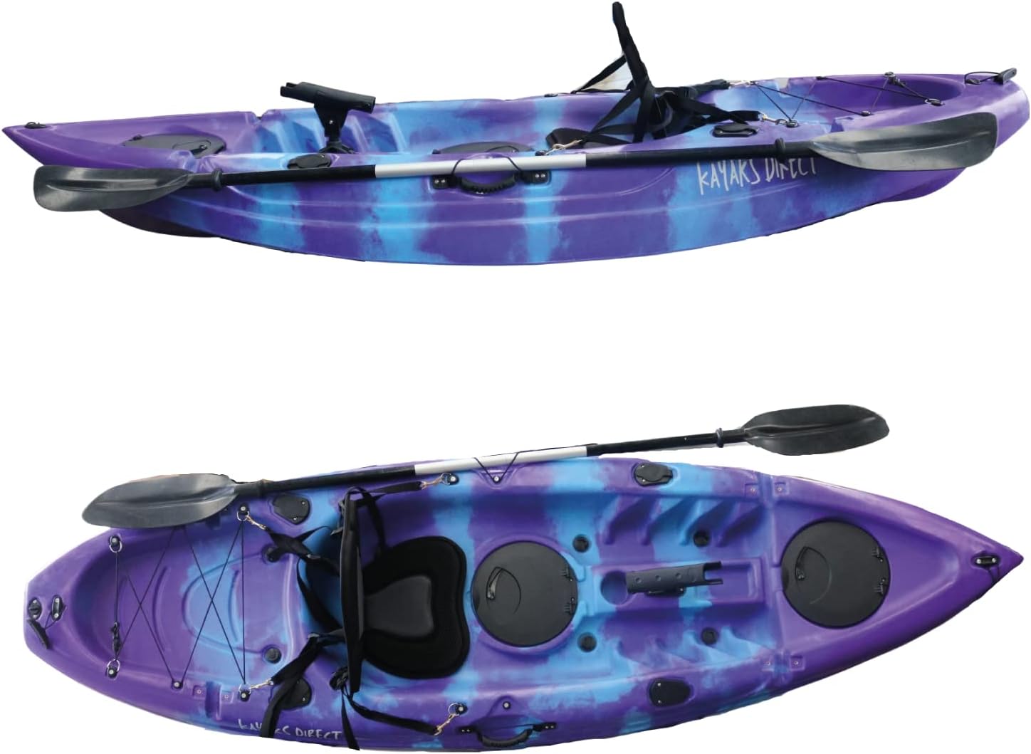 Purple Sit On Kayak (1 Person) with Padded Seat, Paddle, Fishing Rod Holders, Storage Hatches, Length: 265cm / Width: 83cm / Depth: 36cm